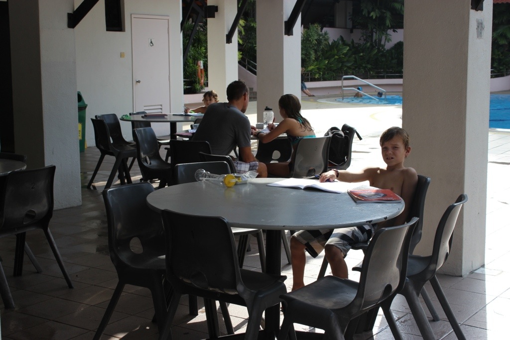 The food at these places is killer! You can get any kind of food you want. It is authentic and cheap. Jesse did order some laksa the other day that wasn’t so yummy, though. Maddux said “your food smells like Ripley (our doggy friend from Hong Kong.)” Someone else chimed in with “yeah, like Ripley’s butt.” No offense to Ripley’s hygiene but, man, it was stinky. Jesse only had one bite, but gave the lady a big tip because he didn’t want to offend her.
