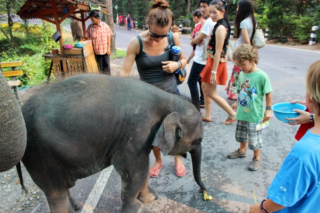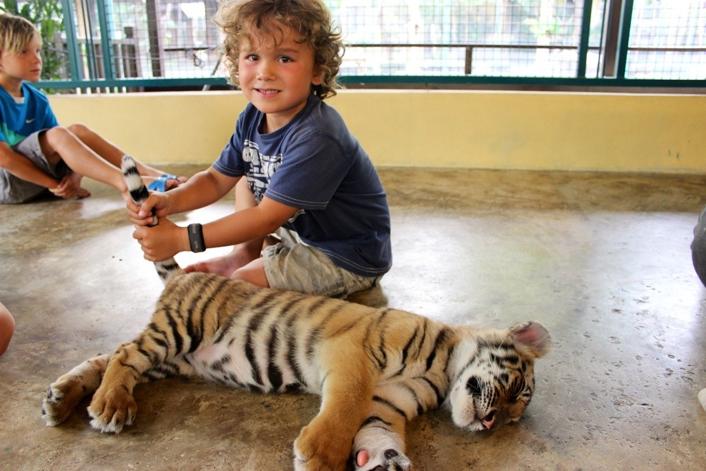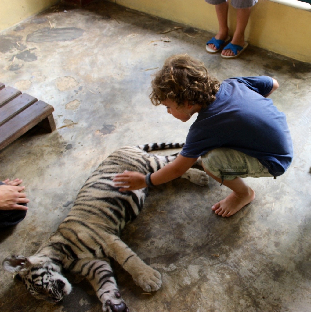 We read conflicting reports on visiting Tiger Kingdom. Some said the tigers are raised from birth by humans so they are sedate and calm around them. Others said that the tigers are drugged because they are extremely sleepy and being the wild animals that they are- they are much too lethargic to be otherwise. I would bet my life on it that these tigers are medicated in some way. Jesse took the kids in to see the tigers while I did some investigating around the premises. People completely laying on the tigers and they are not moving. They did perk up and move around a bit whenever the “trainers” hit them on the nose or ears with a bamboo stick- I guess I would too!