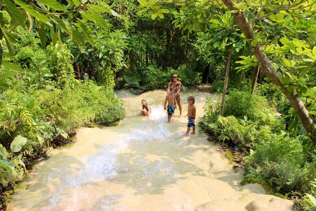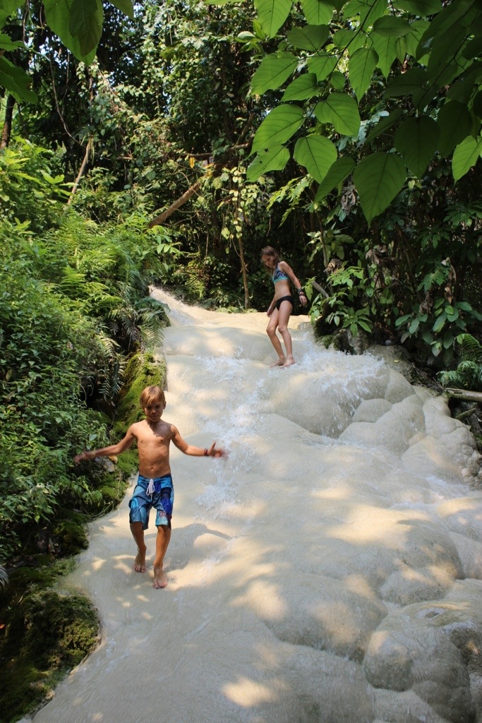 This waterfall defies logic! The water source for Bua Tong waterfall is the Rainbow or Seven Colors Spring. The spring water contains a high amount of calcium carbonate. As the spring water cascades down the falls, the calcium is deposited on the rocks. The calcium carbonate then adds a non-slip surface to the rocks. What’s freaky is that the rocks look super slippery. It kind of plays tricks with your mind. It is, surprisingly, very easy to walk up the face of the falls without slipping.