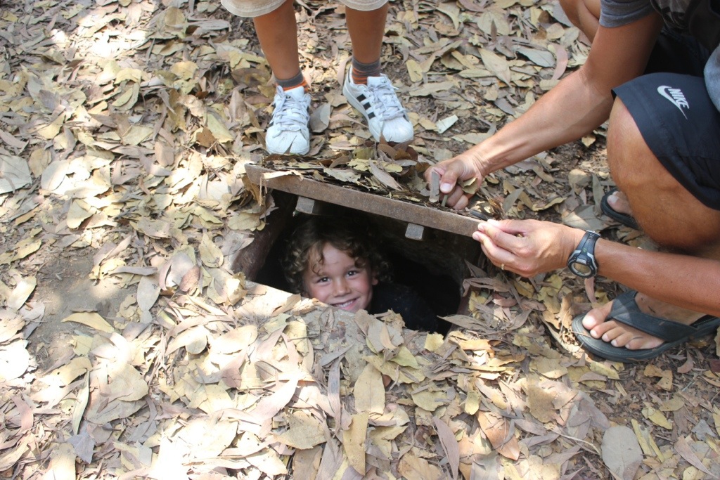 Being in the tunnels, I couldn’t help but think of the people who were forced down there to survive- having to do everything under the ground in hot, stinky tunnels just hoping that they wouldn’t be bombed and collapse (which did happen at times.) People fighting during the day and trying to keep their families safe at night. Then I think of the American soldiers with their ridiculously heavy gear, combat boots, mosquitoes biting them, the heat, the unfamiliar terrain, the enemy coming from out of nowhere then disappearing into thin air, having to worry about traps, child soldiers… It is amazing the conflict went on for over 17 years.