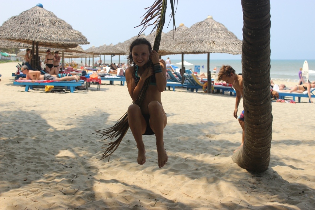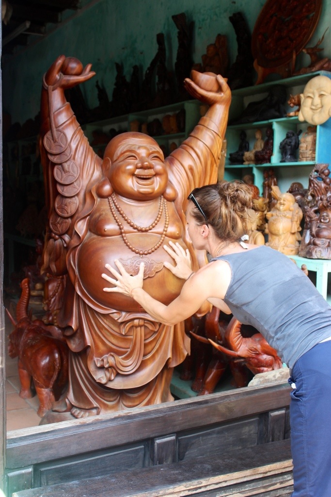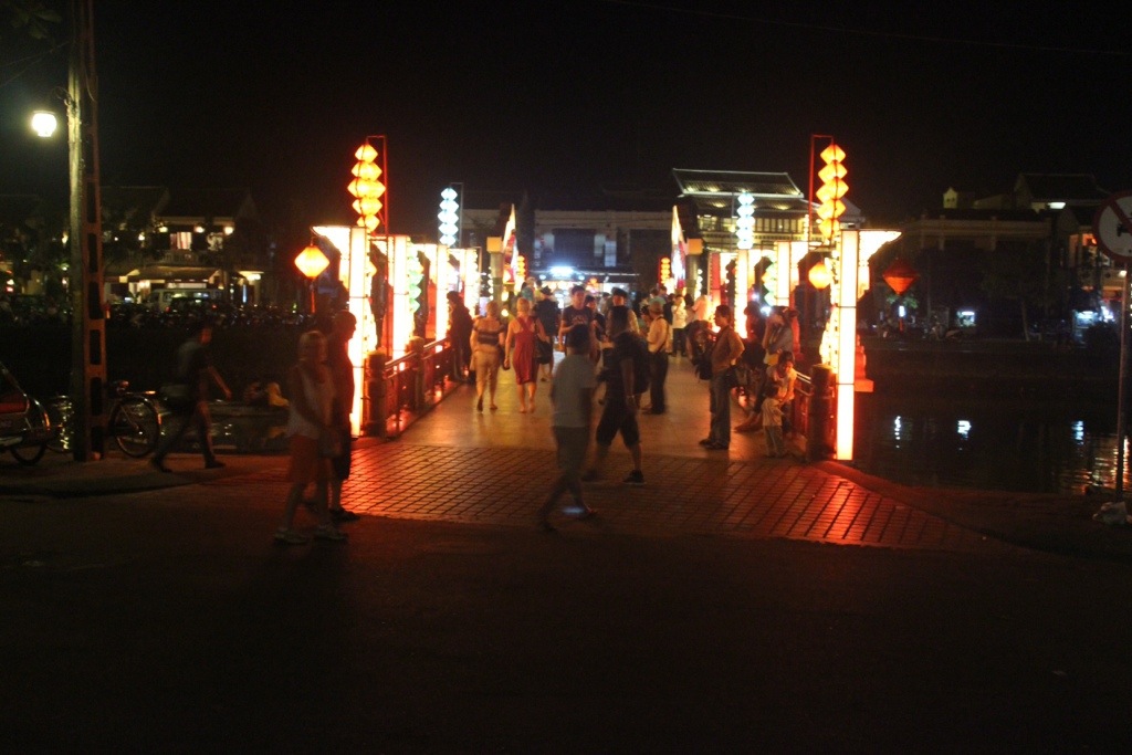 Hoi An Ancient Town is an exceptionally well-preserved example of a South East Asian trading port dating from the 15th to the 19th century. This is a view of the city at night – lots of colorful lanterns line the streets. You can buy floating paper lanterns to place in the river. There are shops, rickshaws and cute little restaurants all along the waterway. We loved this town at night with the lighting that gave it a magical feel. During the day it seemed like a different town altogether, but it was fun to take our rental bikes (1 dollar for a whole day) and cruise around town and down to the beach.