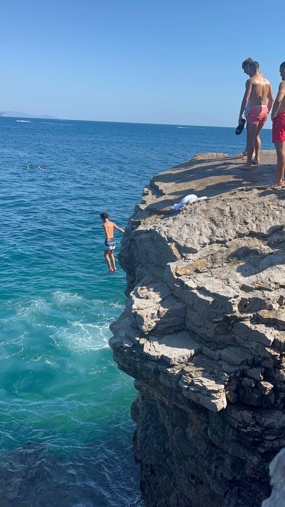 If you are ever get to Dubrovnik, I would highly recommend you go to these two places. Bellevue has a cave to swim in and explore, plus some fun cliff jumping spots. Buza Bar is crazy. Tons of people drinking and jumping off of varying heights. As a mom and one of the older people there, I kept worrying about people getting too drunk, too confident and then hurting themselves. I may have done similar things back in the day. Anyhoo- when we were there, everyone was safe! Some of the cliffs are so high, they call jumping off of them “tombstoning.” Yikes!