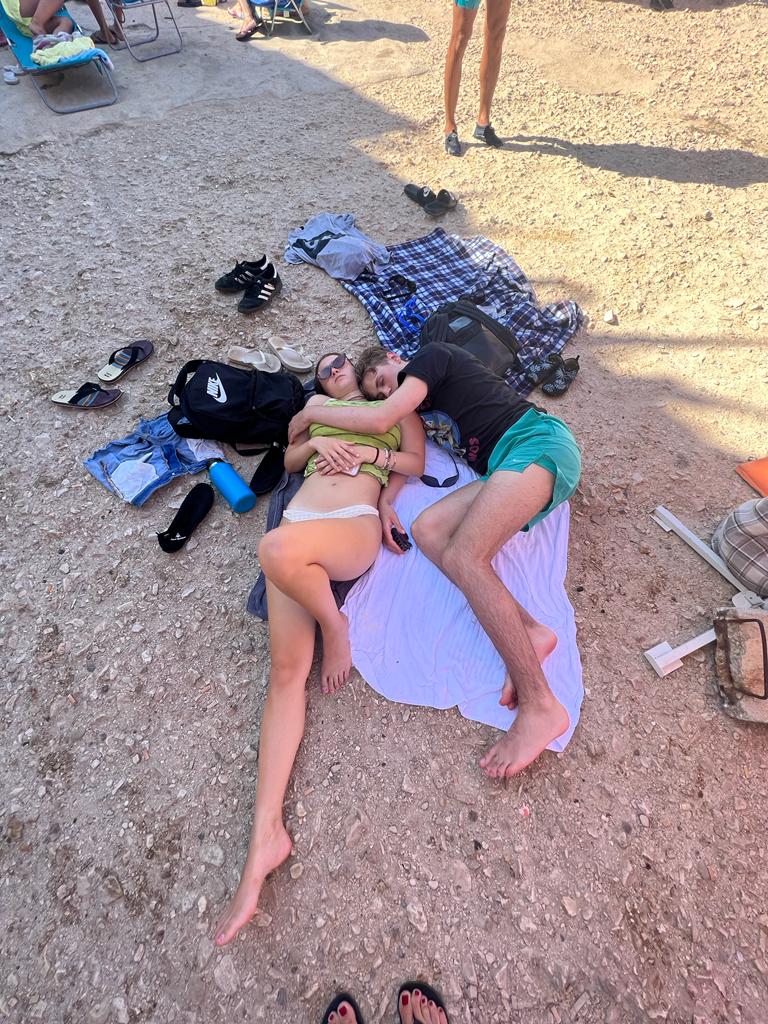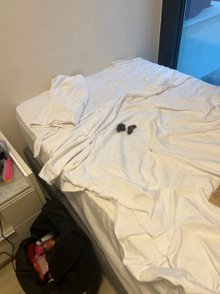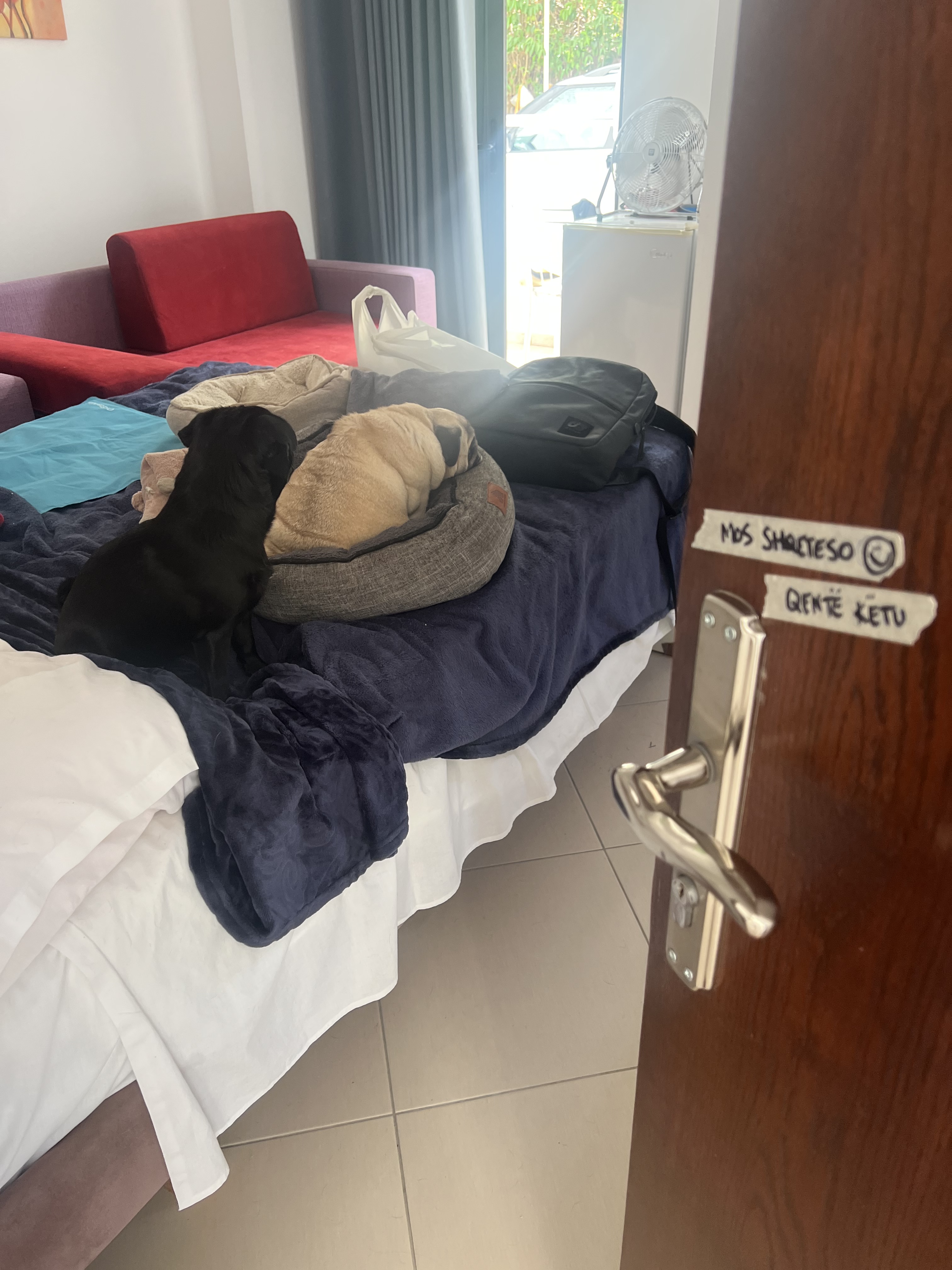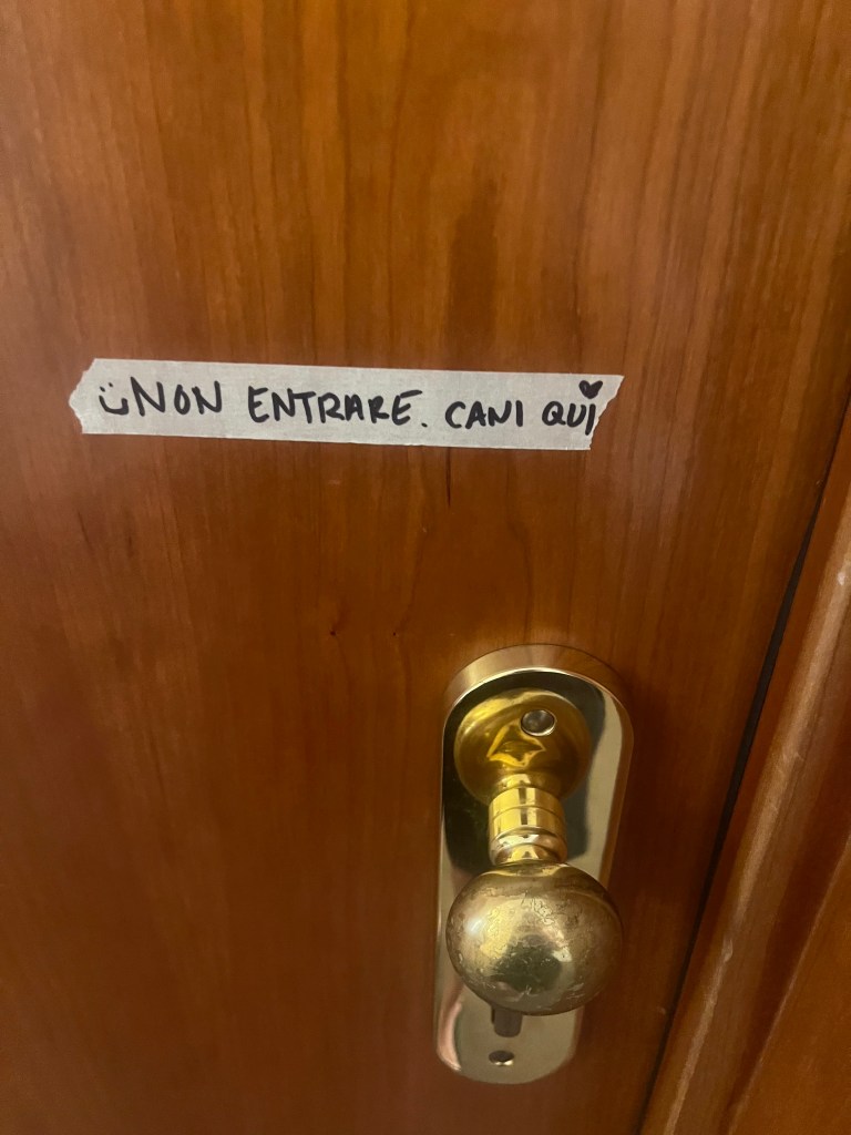 Here are some photos of traveling Life. We often wash clothes in the sink, cool the dogs off in pools, lakes or the sea and sometimes we have to wear incredibly sexy aqua socks. When we do stay at a hotel, I don’t want anyone to disturb Maizy and Dottie- so I translate “do not enter. dogs in here.” 🙂 There is a photo of poop on Emerson’s bed. Dottie was mad at her for some reason. That is her way of getting revenge. Michael, Em’s boyfriend, recently joined our crew! He adds a buffer so there is less arguing now.